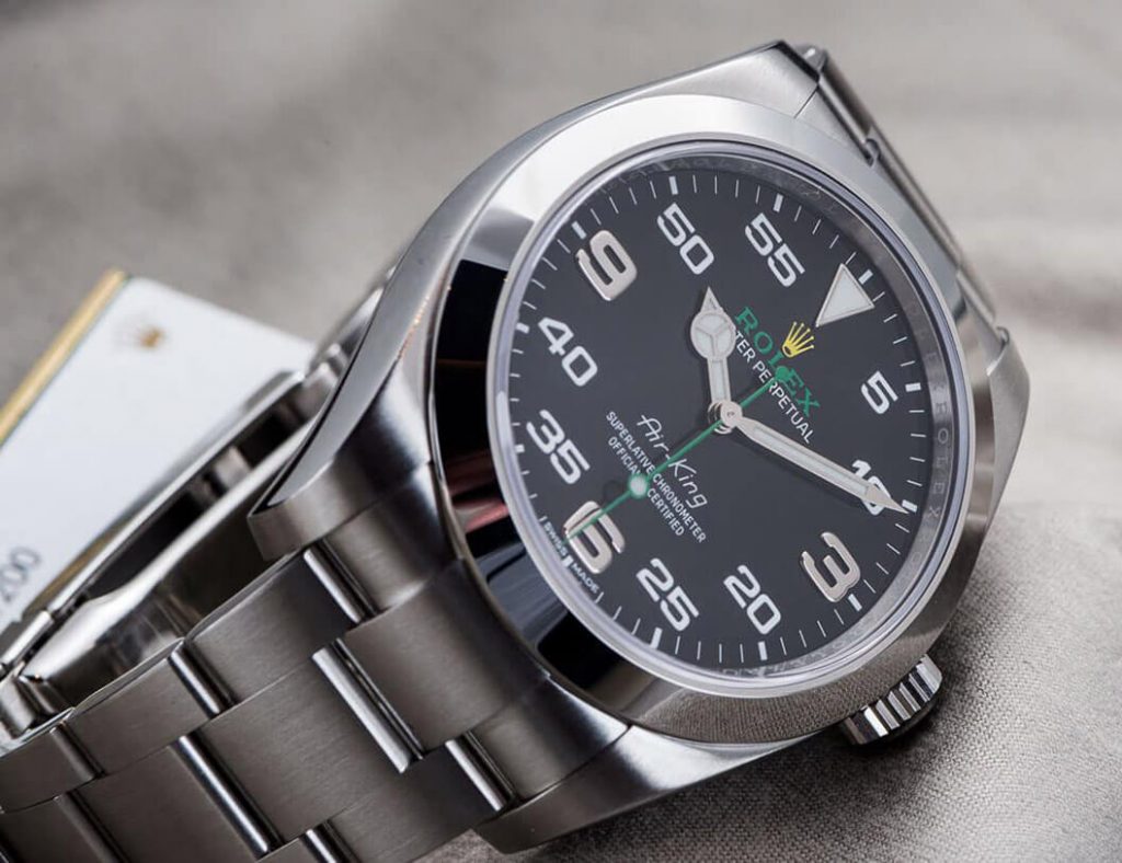 A larger case and a clearer dial are the biggest changes in this Rolex watch replica Air-King. Some people may ask, what about the bracelet? In fact, the watch bracelet of this replica Rolex is similar to others, which are all forged from stainless steel. This not only guarantees its sturdiness but also its beauty.