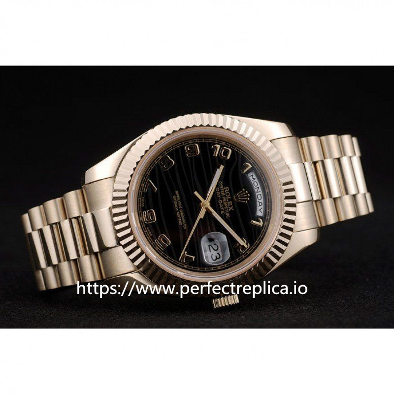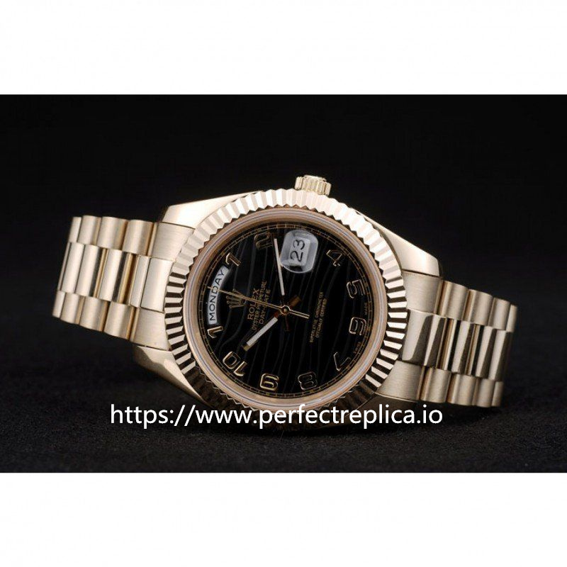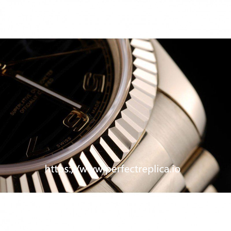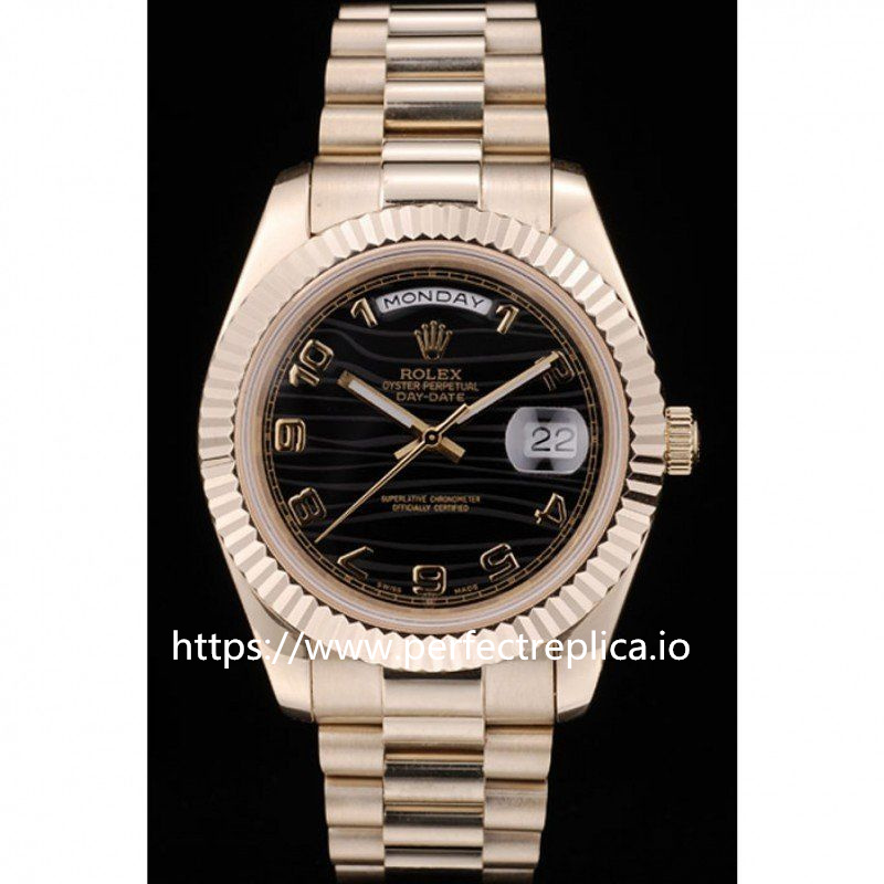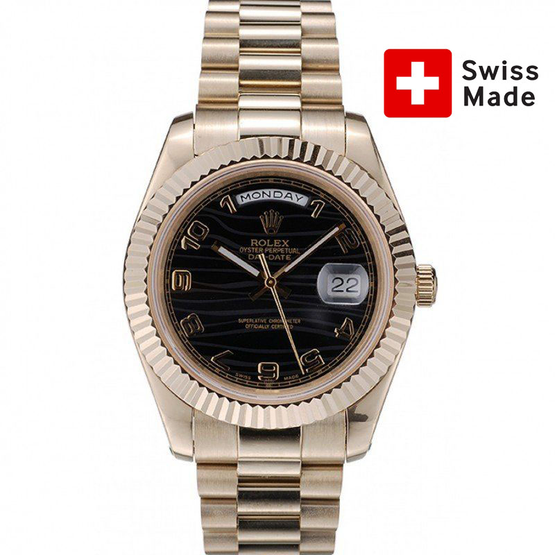 Rolex Day-Date Gold Stainless Steel Ribbed Bezel Black Dial 41998