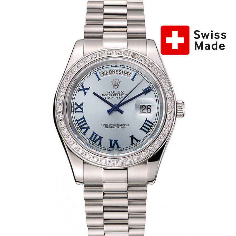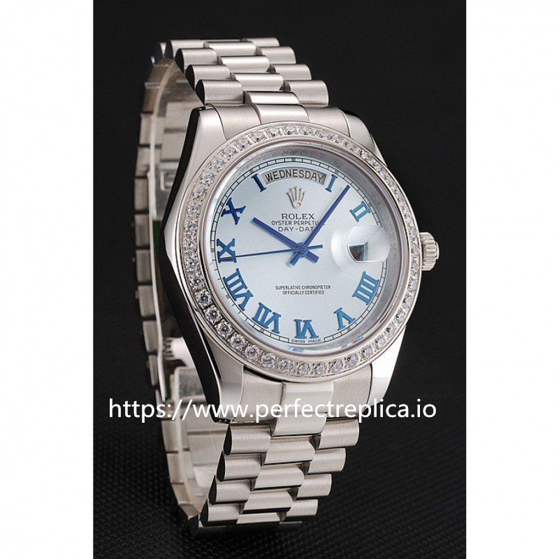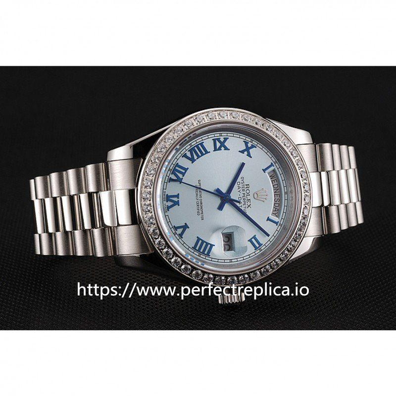 Rolex Day-Date Ice Blue Dial Diamond Case Stainless Steel Bracelet 1453962