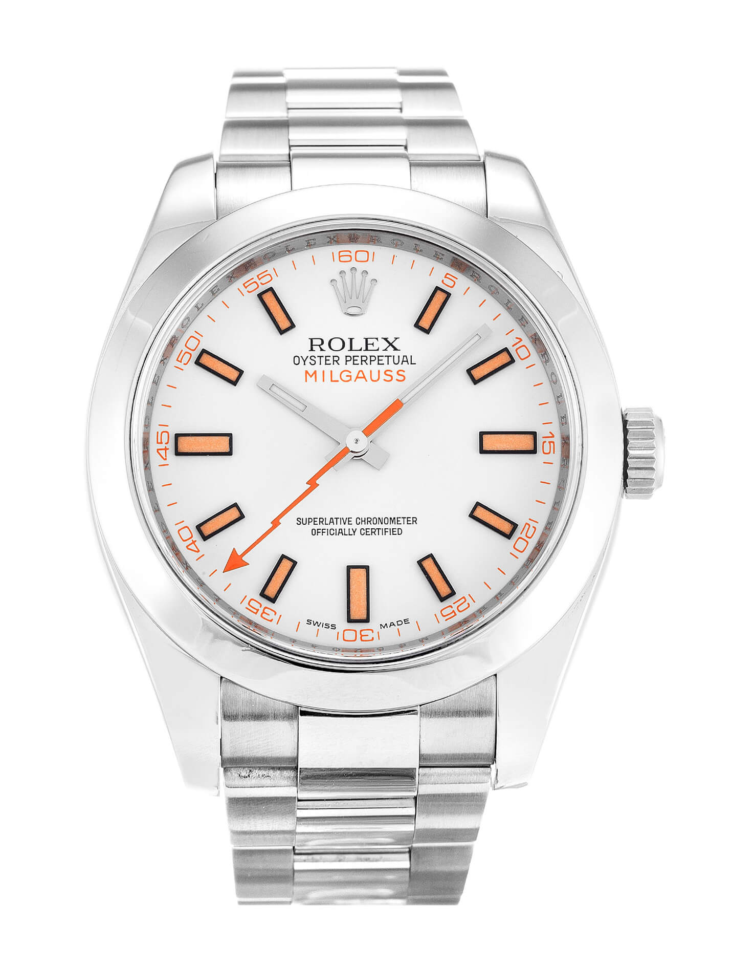 The white dial is pure and natural. In addition to the unique sapphire crystal glass, this beautiful replica Rolex watch also has a distinctive lightning-shaped second hand. The stainless steel case and strap are highly polished and feel very comfortable. The silver case, the white dial and the orange bar scale not only increase the readability of the watch, but also improve the aesthetics of the watch. The simple and dynamic appearance adds a lot of personality to this watch. The replica watch made of stainless steel ensures the quality and normal operation of the watch. This energetic fake Rolex watch is definitely the best choice among casual watches.