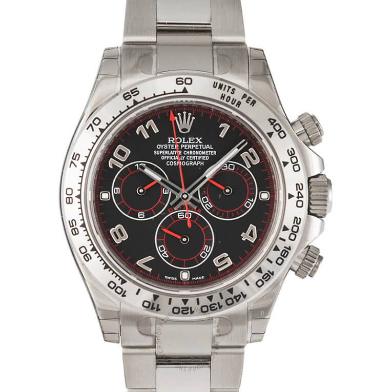 Rolex Daytona replica watches make a very practical watch. It can not only time, read time, but also measure speed. In general, this is a multifunctional and practical watch. The craftsmanship of this watch is complex, and it is also given a sporty style, the purpose is to make Daytona series of watches easy to identify. It is composed of matte black with a silver dial with red lines and silver Arabic numerals. This watch has rich design details and a variety of practical functions. It is a recommended watch.