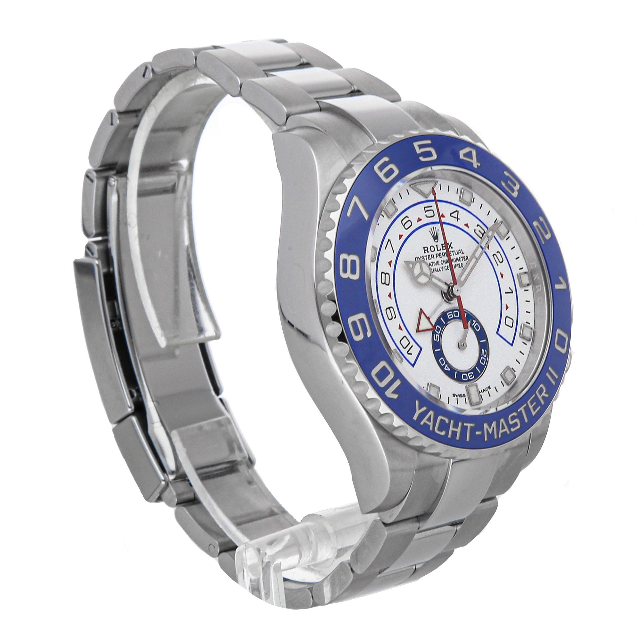 The dial is a special style. This exaggerated and complex design makes it more distinctive in a typical Rolex replica watch. The white dial can improve the readability of the dial, so it is more convenient to read. There are Arabic numerals on the dial. This Arabic numeral can help count down the minutes of a regatta chronograph. It can’t help read the time. In addition, you can also see the red triangle minute hand and second hand in the dial. These two kinds of hour hands indicate the progress of the regatta timer. The time scale when reading is represented by blue squares. The design of these squares not only increases the visual area of the dial but also the design and beauty of the dial.